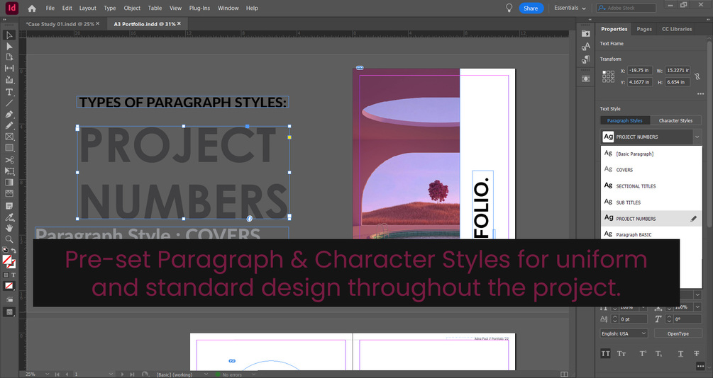 - Premium InDesign Templates: Gain access to a diverse array of meticulously designed 1:1 aspect ratio templates, optimized specifically for architectural portfolio presentations.